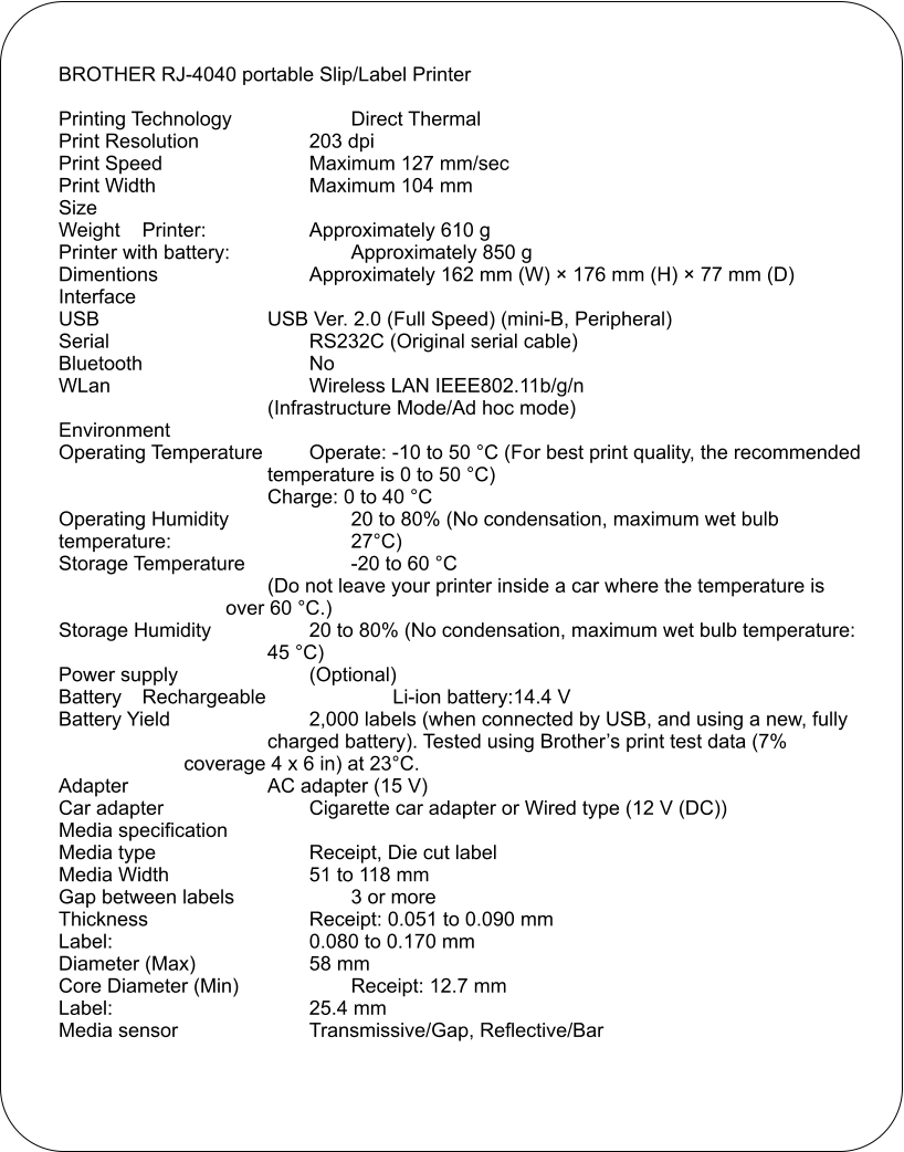 BROTHER RJ-4040 Portable Label printer